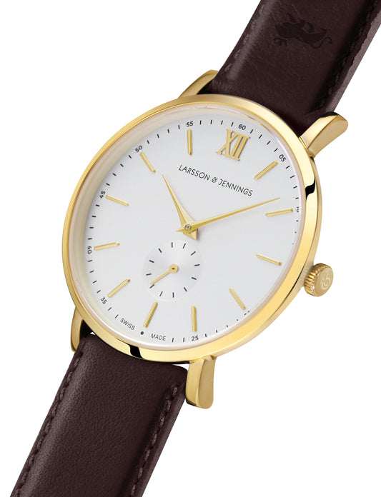 Sold outJura Leather 38mm Gold White