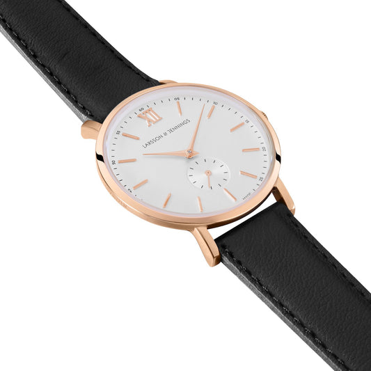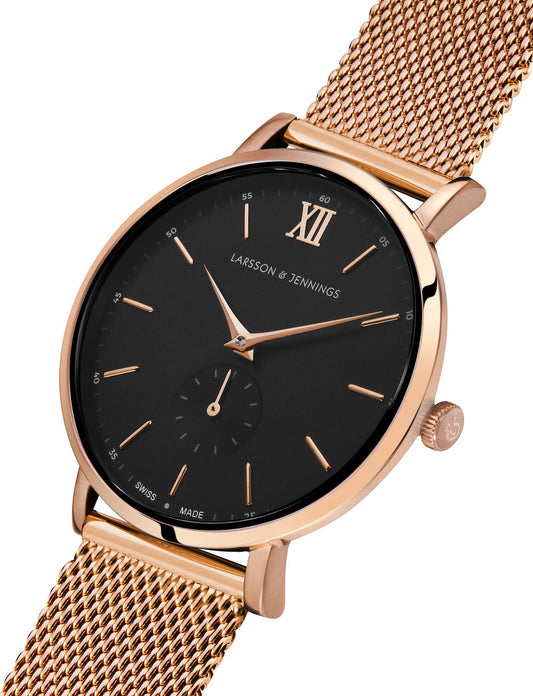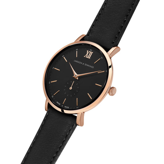 Jette Lugano Leather 40mm Rose Gold Black