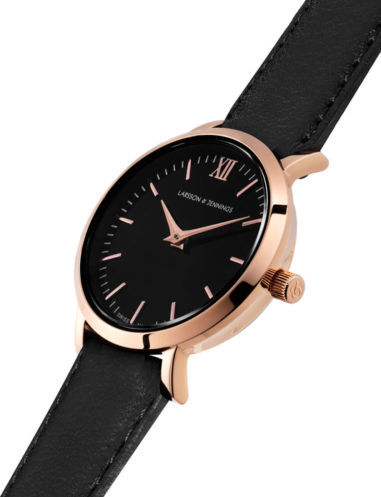 Lj Classic Lugano Leather 33mm Rose Gold Black