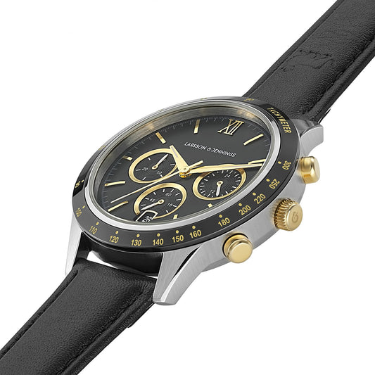 Rally Black Leather 39mm Silver Black Gold