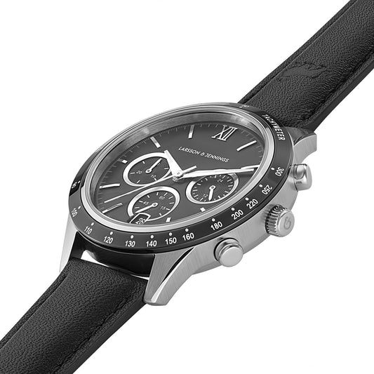 Rally Black Leather 39mm Silver Black