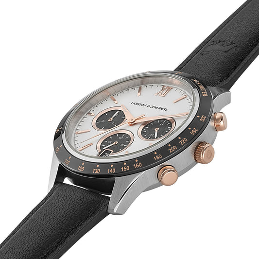 Rally Black Leather 39mm Silver Black White Rose Gold